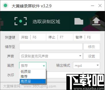 6、软件支持三种视频画质,默认使用推荐画质,如果对画质要求不高,反而对视频大小要求可以选择较低的画质,反之则选择高质量。